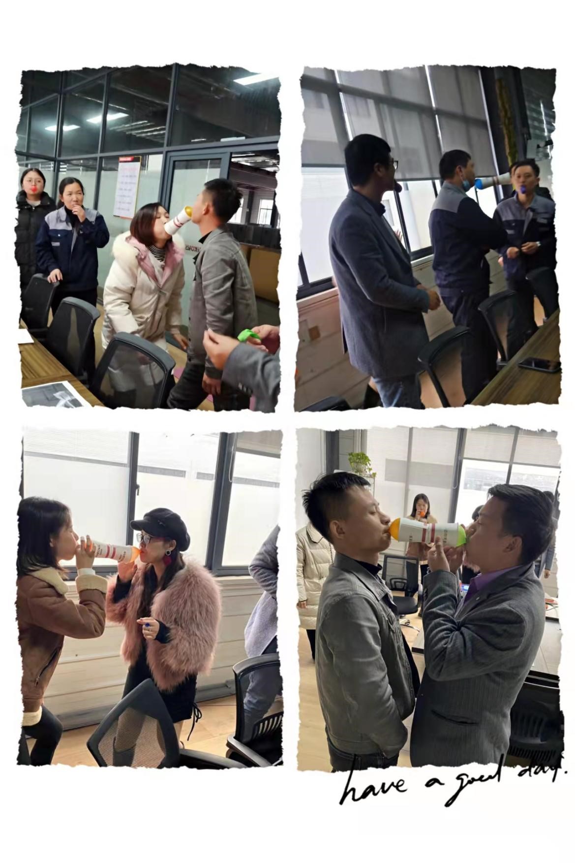集体小游戏“气球传纸杯”大家凝神聚气,默契配合,不到最后一刻绝不放弃,缓解了大家紧张的心情,也给忙碌的工作中增添了一丝色彩。
